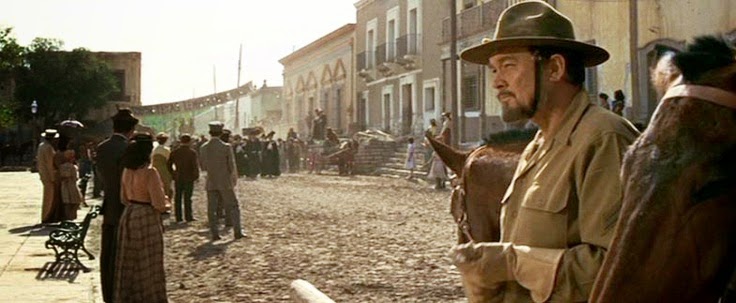 As important as hierarchy is to the Bunch, it’s a far greater challenge for Pike to maintain his leadership than it is for an officer in the military. After all, whatever the shape the officer may be in, all soldiers are trained to salute and obey their superiors. There is no such guarantee of authority among outlaws, so when Pike appears vulnerable, he can go from alpha to zeta in a heartbeat. Among outlaws, the leader must constantly prove his superior worth. Unlike a military officer, he cannot take his position for granted or rest on his laurels. And it is because Pike proves his worth as a leader in the train robbery that the Gorch brothers feel great respect for him... and even join him in the mad plan to save Angel from Mapache later on. Mapache, as a military man, need not try nearly as hard as Pike Bishop does to be numero uno. Indeed, he seems to spend much of his time partying and acting the clown. On the other hand, there are moments when we do get a sense of why everyone revolves around him. He may be a boor and lout but he’s not without courage, charisma, and braggadocio that impress the men(and the muchachas bonitas). He’s no ordinary Mexican who’s content to be eating tacos and green chili peppers.