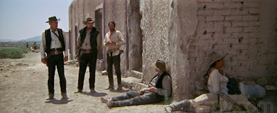 Unlike the samurai in SEVEN SAMURAI, the men of THE WILD BUNCH, being outlaws, don’t have much meaning and direction in life. Like animal predators, they go after one prey after another; there is no overarching meaning to their lives since they’ve abandoned the moral life, and without morality, there can be no higher meaning or purpose. At least the Corleones in THE GODFATHER had the ambition of one day becoming legitimate and respectable members of American society. The Bunch are content to ride around looking for one loot after another. They sort of live paycheck to paycheck or holdup to holdup. Old Man Sykes has been in the game for a long time, but it’s the same game. So, in a way, they are somewhat moved when the people of Angel’s village treat them not as thieves and killers but as Robin-Hood-like ‘freedom fighters’. Pike can be very cold, and even though he understands the plight of the villagers, his mind is still set on money or gold anyway he can get it. And his (anti)sermon to Angel, who is distraught over his murdered father and stolen girl, is "Either you learn to live with it or we leave you here", whereupon Angel firms up and says, "I go with you, Jefe."